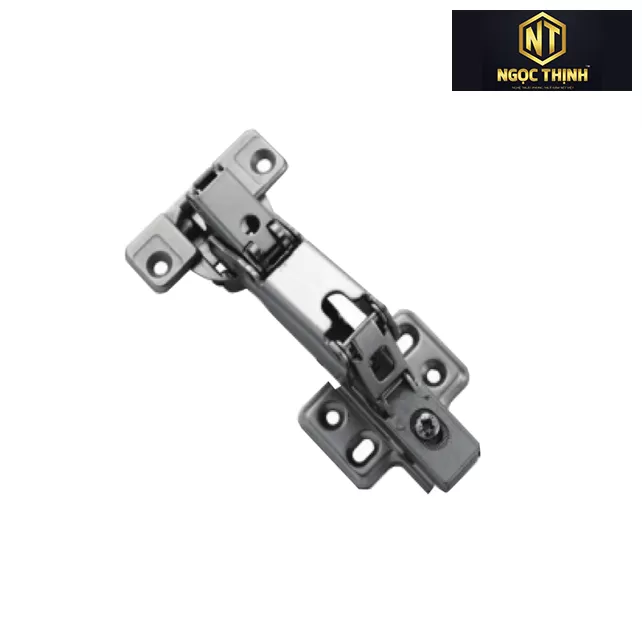 Bản lề cong: Là loại bản lề có cấu tạo từ bản lề cong và giảm chấn, sử dụng với 2 tủ liền kề có chung 1 vách.