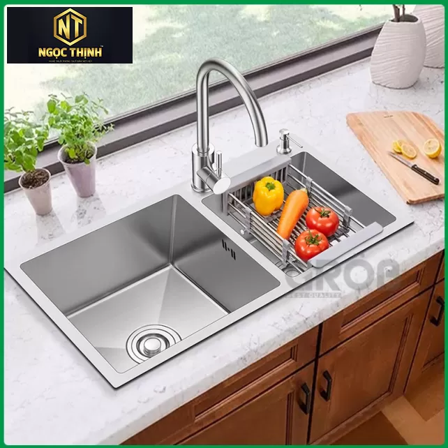 • Thiết kế 2 hố, người dùng có thể tận dụng sản phẩm cho nhiều mục đích khác nhau từ ngâm rửa, phân loại chén bát hay linh động sử dụng 1 ngăn dành riêng cho thực phẩm, 1 ngăn chỉ dùng đựng rửa chén bát.