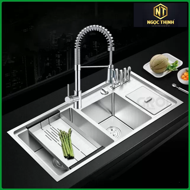 Thiết kế 2 hố, người dùng có thể tận dụng sản phẩm cho nhiều mục đích khác nhau từ ngâm rửa, phân loại chén bát hay linh động sử dụng 1 ngăn dành riêng cho thực phẩm, 1 ngăn chỉ dùng đựng rửa chén bát.