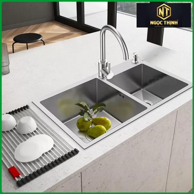 Thiết kế 2 hố, người dùng có thể tận dụng sản phẩm cho nhiều mục đích khác nhau từ ngâm rửa, phân loại chén bát hay linh động sử dụng 1 ngăn dành riêng cho thực phẩm, 1 ngăn chỉ dùng đựng rửa chén bát.
