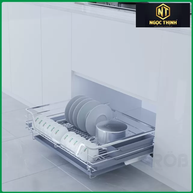 Kệ để bát đĩa được thiết kế âm tủ giúp căn bếp trở nên gọn gàng, tăng tính thẩm mỹ.