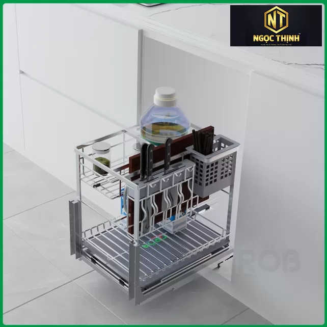• Tiện Lợi Cao: Với cơ chế ray trượt, bạn có thể dễ dàng lấy và cất dao, thớt mà không cần cúi sâu hay tìm kiếm lâu.
