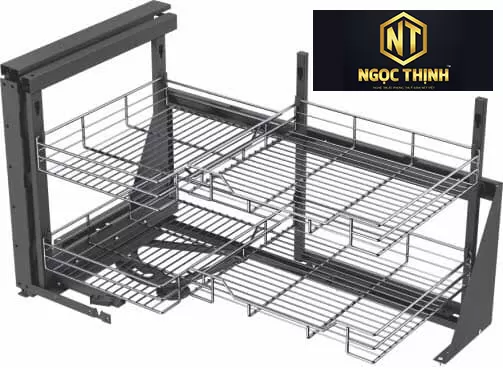 - Thiết kế thông minh: Giá được bắt trực tiếp vào cánh tủ kết hợp với bộ cơ cấu chuyển động có thể đảo chiều thông minh nên khi mở cánh tủ, 2 khoang chứa được gắn với cánh tủ di chuyển theo giúp dễ dàng nhìn thấy và để vào/lấy ra toàn bộ đồ trên giá.