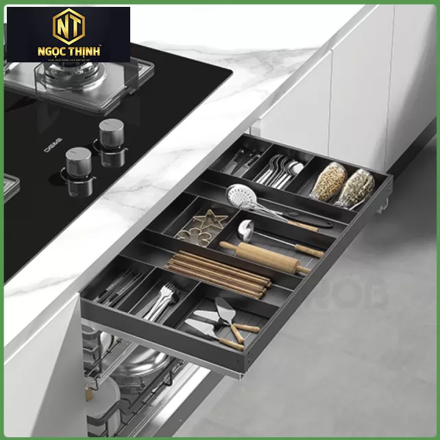 • Được làm bằng hợp kim nhôm cao cấp, ray giảm chấn nên giá thành sẽ cao hơn so với các loại khay chia khác thông thường.