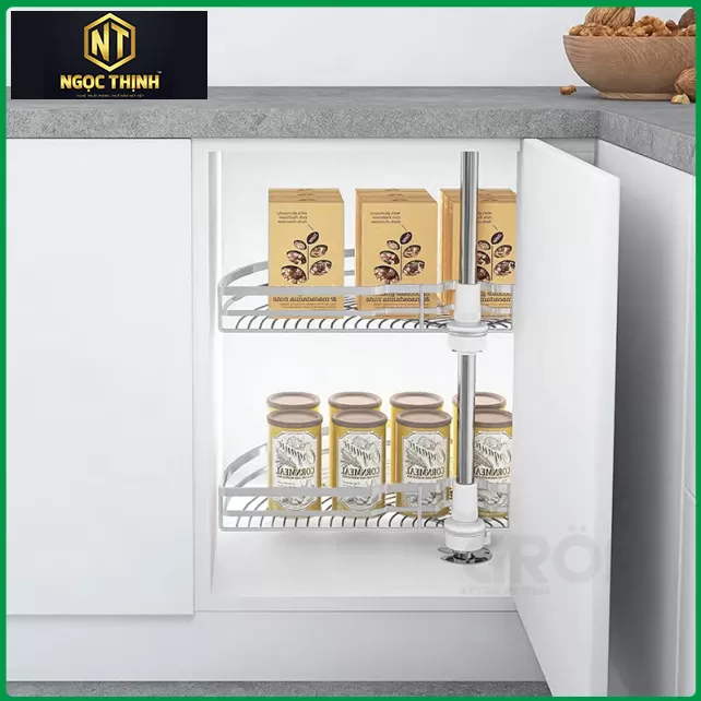 Tận dụng tối đa không gian góc tủ: Thiết kế mâm xoay 180 độ giúp dễ dàng lưu trữ và tiếp cận các vật dụng trong góc tủ, biến không gian khó sử dụng thành khu vực lưu trữ tiện lợi.
