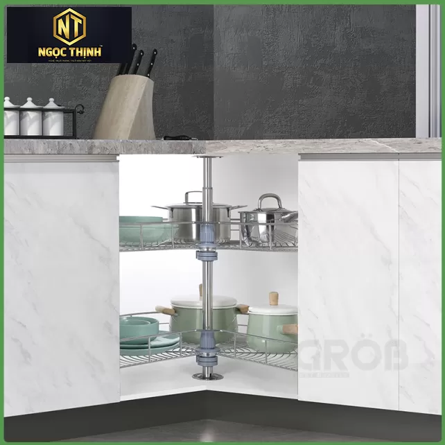 • Thiết kế thông minh với khả năng xoay tròn xung quanh trục giúp bạn dễ dàng lấy các vật dụng có trên mâm dù mâm được lắp trong góc khuất.