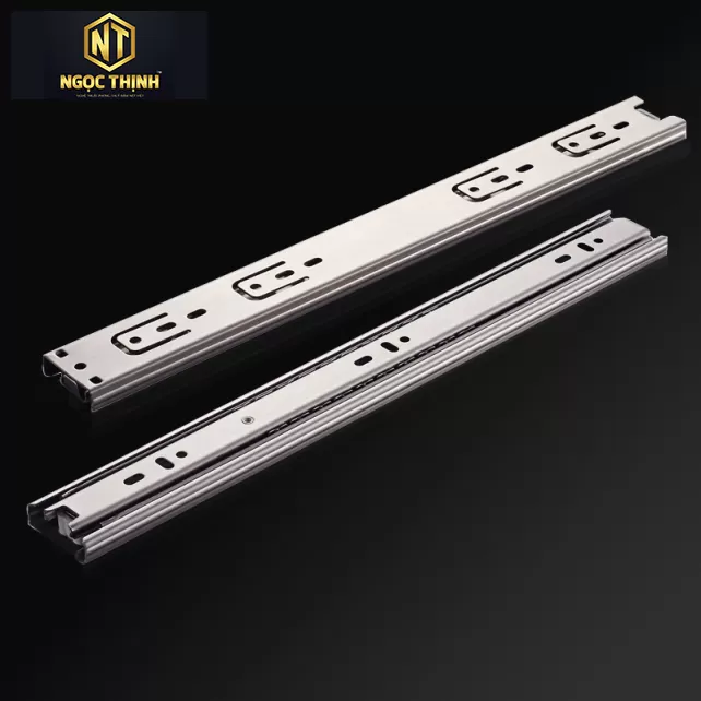 Ray bi 3 tầng không giảm chấn lắp đặt dưới ngăn hộc kéo che giấu các thanh ray, thích hợp ngăn kéo phụ kiện tủ bếp, văn phòng, ngăn kéo cao cấp.