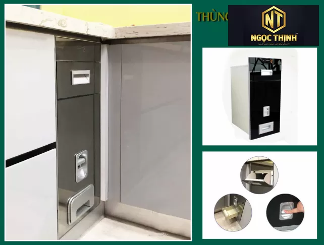 Thùng gạo có dung tích khá lớn, thùng tủ bằng thép sơn tĩnh điện, mặt thùng gạo bằng kính đen.