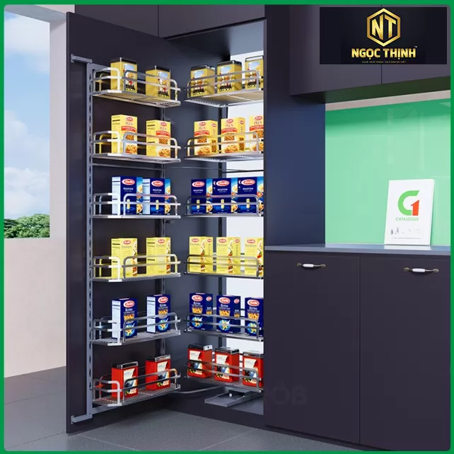 • Tiết kiệm diện tích tủ bếp: Tủ đồ khô có khả năng lưu trữ lớn, tận dụng tối đa không gian tủ bếp mà vẫn gọn gàng và ngăn nắp.