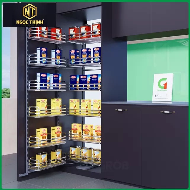 Tối ưu hóa không gian: Giúp bạn tận dụng tối đa diện tích lưu trữ trong tủ bếp, giữ cho mọi thứ luôn gọn gàng và ngăn nắp.