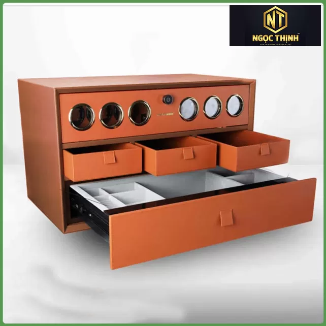 Tủ đồng hồ có tính năng nạp năng lượng, lên dây cót cho đồng hồ tự động được thiết kế xoay chuyên dụng giúp thay cho việc phải đeo đồng hồ suốt 6-8 tiếng một ngày.