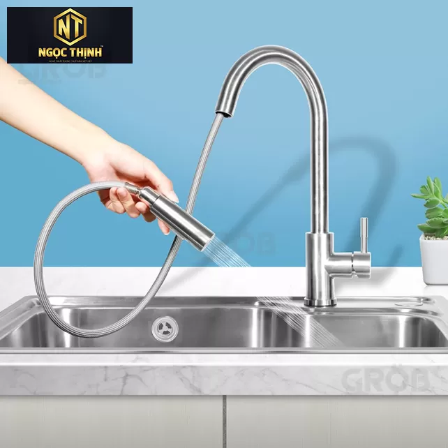 • Vòi rửa dạng dây rút có thể đưa vòi tới mọi vị trí trong bồn rửa do khả năng xoay được 360 độ và có thể kéo ra kéo vào, điều chỉnh được độ cao của vòi, độ rộng của nước phun ra một cách dễ dàng.